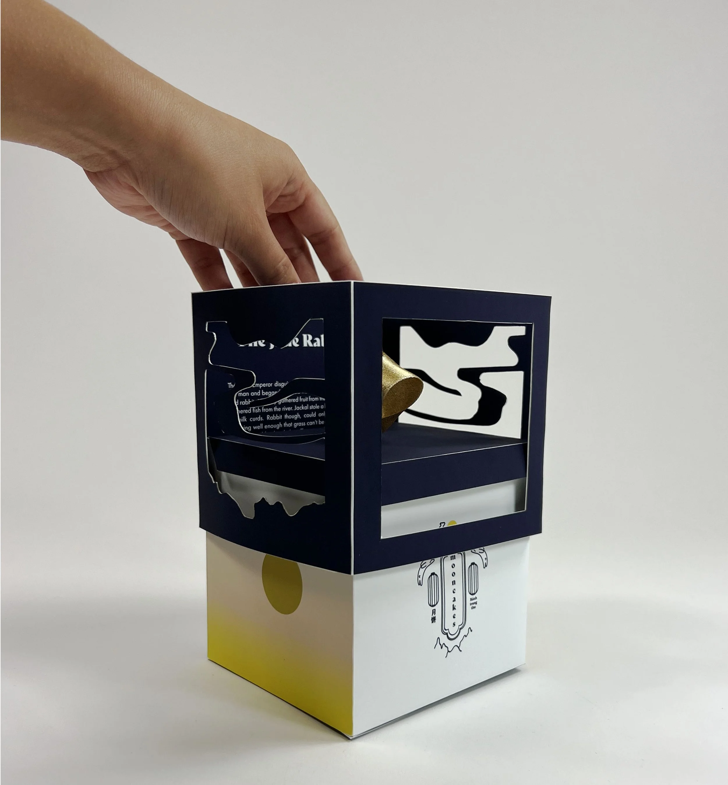 The box itself is designed to resemble a lantern, which is another iconic feature of the mid-autumn festival. To add an extra layer of storytelling, the inner part of the sleeve features the story of the jade rabbit. Through this innovative rebranding, I have created a new and exciting way to celebrate this beloved festival while honoring its rich history and traditions.